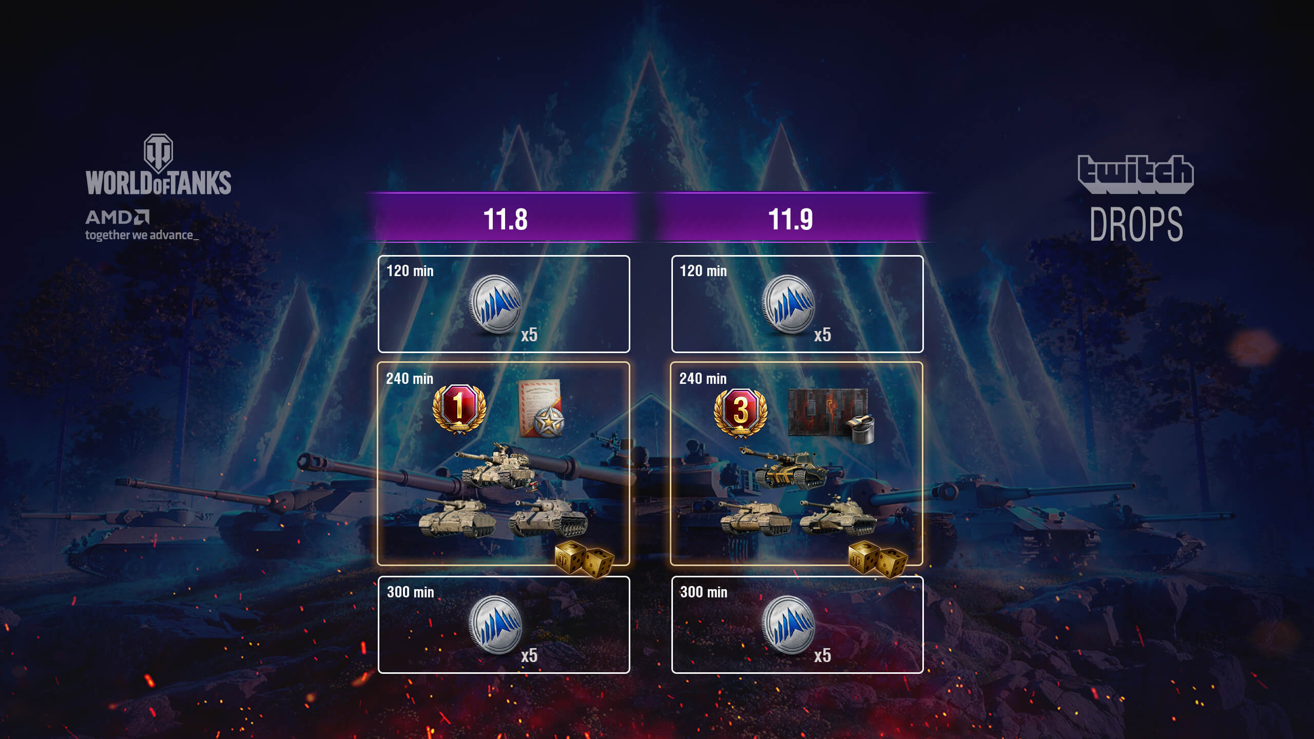 Además de los canales oficiales, los colaboradores de World of Tanks también llevarán a cabo campañas de Drops de Twitch especiales cada tanto en las que podrán ganar más recursos para el juego. Descubran más información sobre el programa de colaboradores.