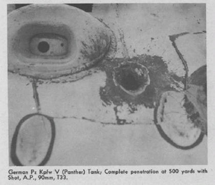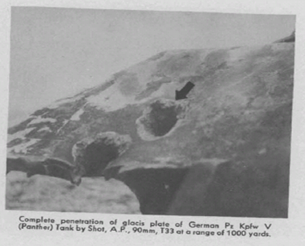 The report included information on a new round for the 90mm gun, the T33, which reflected additional attention to the metallurgy needed to effectively penetrate Panther, and to design considerations needed for attacking the Panther at longer effective ranges: