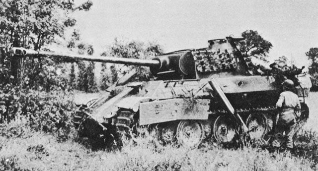 However, combat reports indicated that the 75mm actually could, on rare occasions, penetrate a Panther’s front. The mantlet of the early Panther was rounded. If a shot struck either the top or the bottom quarter of the mantlet, it tended to ricochet off due to the slope. Those striking the bottom quarter ricocheted downward from the turret face, which meant that the projectile could go on to strike the turret ring or the hull roof of the driving compartment, behind the driver or co-driver’s hatch. Here the armor was thin, and rounds that bounced off of the mantlet often jammed the turret or even penetrated through the hull roof.